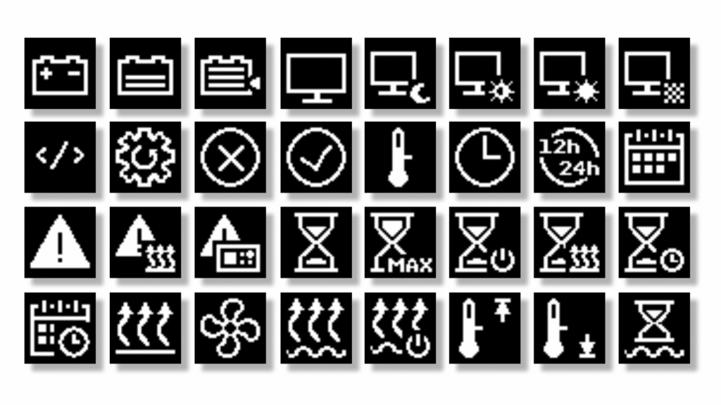 Aufgrund der niedrigen Displayauflösung war eine pixelgenaue Gestaltung wichtig. Viele Icons mussten eigens erstellt werden, da sie in der vorgegebenen Größe von 36×36 Pixeln aus dem unternehmensweiten Styleguide nicht klar erkennbar gewesen wären.